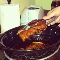 First off, thanks to my brother and sister-in-law for another great Crock Pot idea. Ribs in the crock pot? Yes, please. It it couldn't be easier. Daniel went to the grocery with me yesterday and we walked past the ribs. He suggested we try it. It was the first time in my life I have ever bought ribs or any bone in meat. Actually, its probably only about the 10th time in my life I've eaten them. Before I married Daniel I was definitely a bread, pasta, and chicken kind of girl. He's a red meat and potato kind of guy. So you can imagine how we have run into trouble over the years in the kitchen. This was going to be another of those opportunities to learn from each other. We came to an agreement that we would buy the ribs if Daniel would help cook them in the Crock Pot. This is his first crocking experience and my first rib experience, awww..... Young love. Well, maybe not so young.